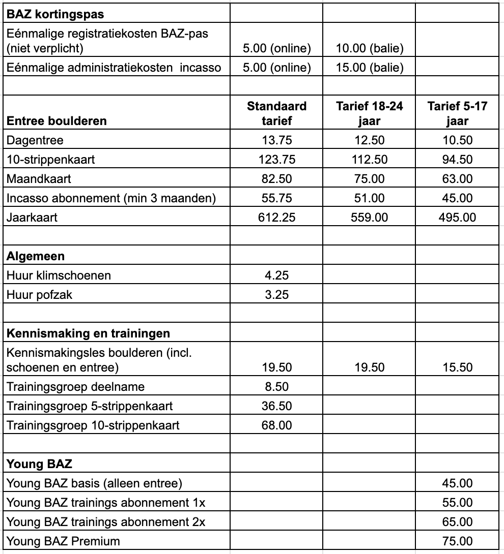– opzeggen kun je het beste doen per email: administratie@bazbouldergym.nl